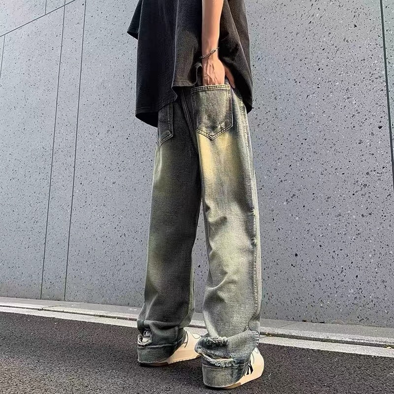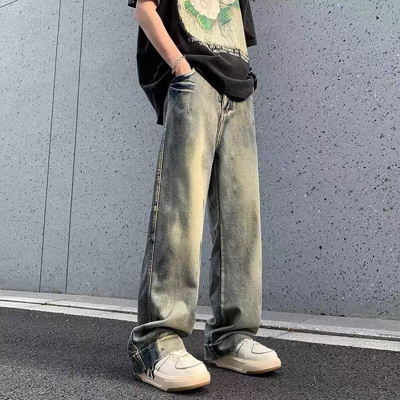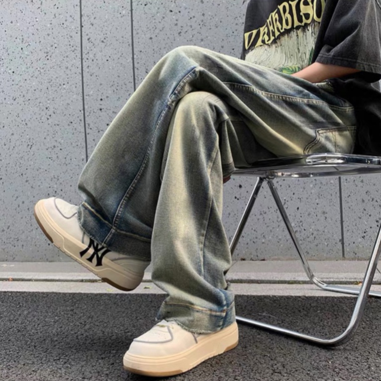 KeyBoy celana panjang pria baggy retro straight kulot jeans celana dewasa cowok vintage casual longgar denim pants korean style