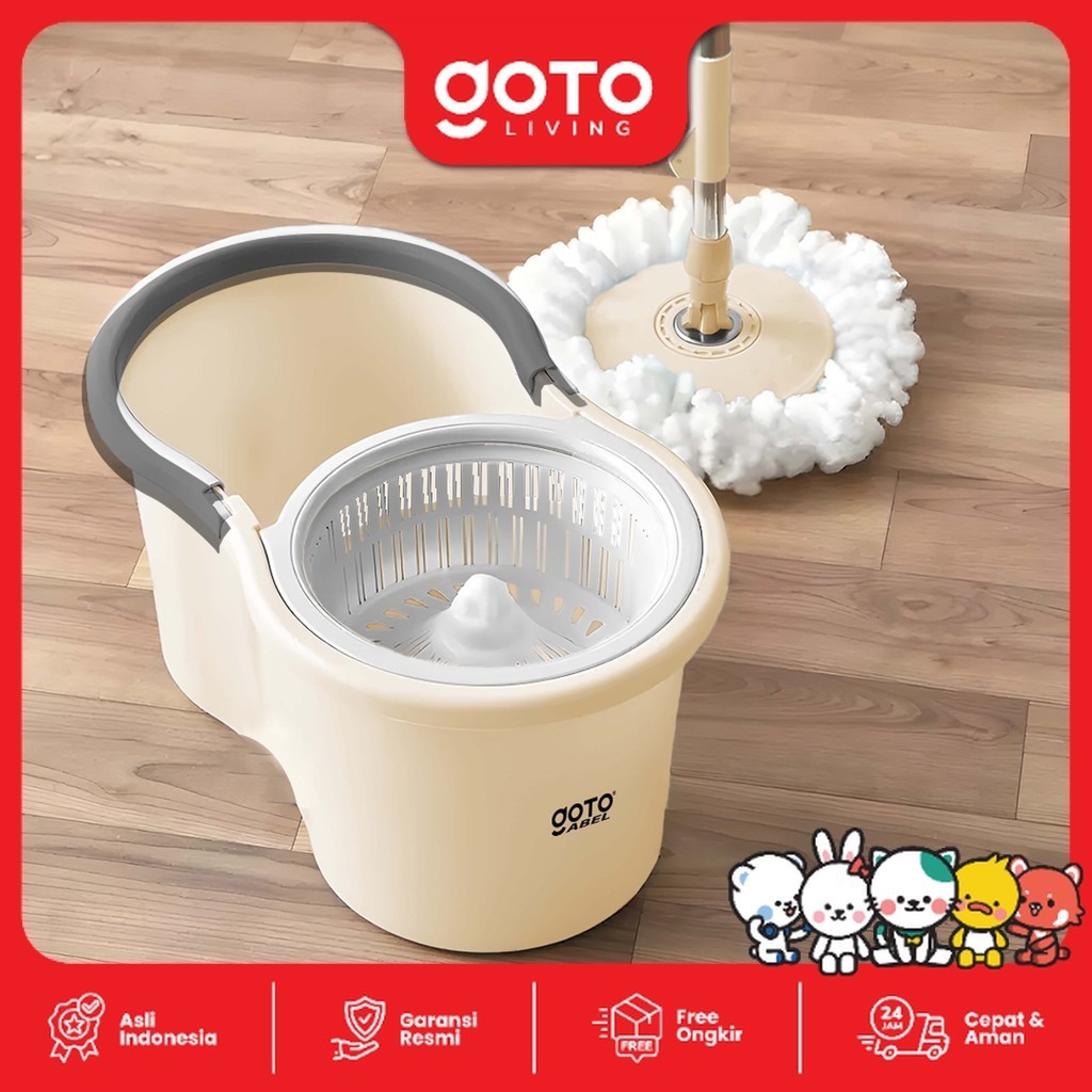 (Promo Special) Goto Abel Spin Mop Pel Lantai Putar Otomatis Set Ember Alat Pel Microfiber Praktis dan Kuat