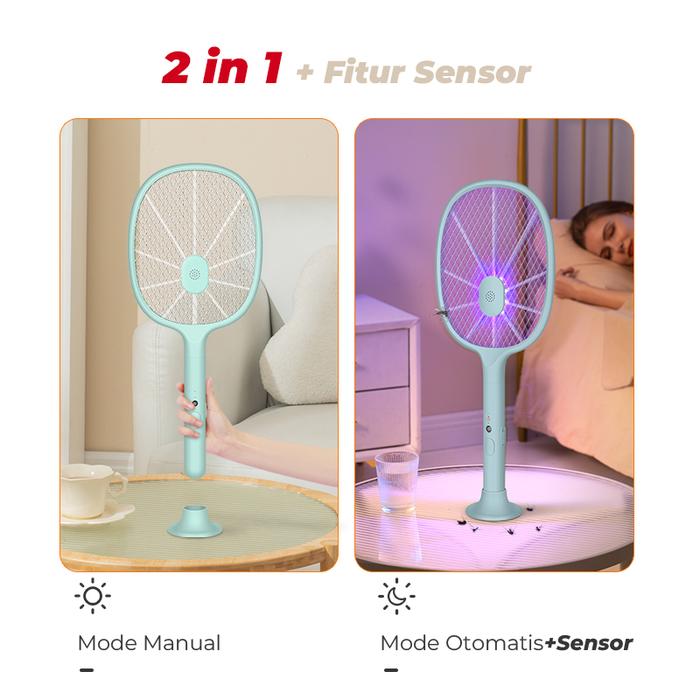 Aoki Raket Nyamuk Sensor Pembasmi Nyamuk Dengan Photosensitive Induction Electric Mosquito Swatter - Putih