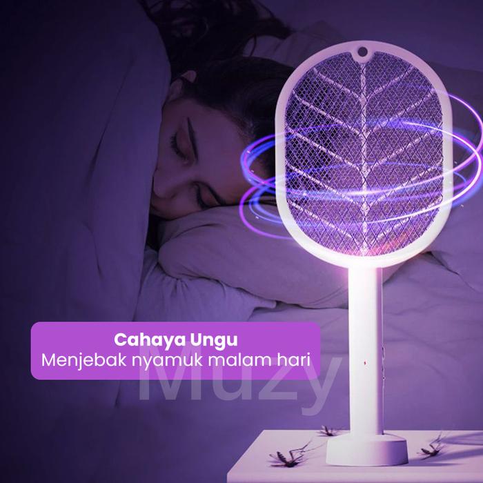 Muzy Raket Pembasmi Nyamuk Listrik 2 In 1 Pembunuh Nyamuk Elektrik Sinar Uv Dapat Berdiri Mosquito Killer Dengan Led Li