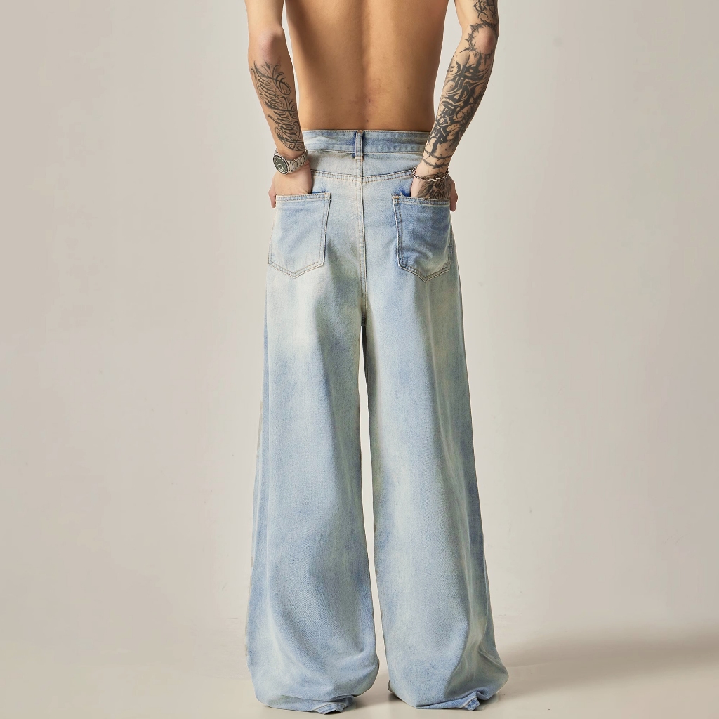 celana jeans pria baggy retro biru muda standar denim gombrong skena jumbo cowok laki laki korean style oversize kulot straight jeans boyfriend casual distro