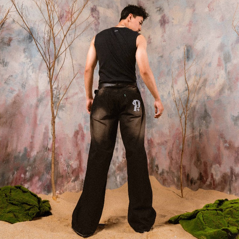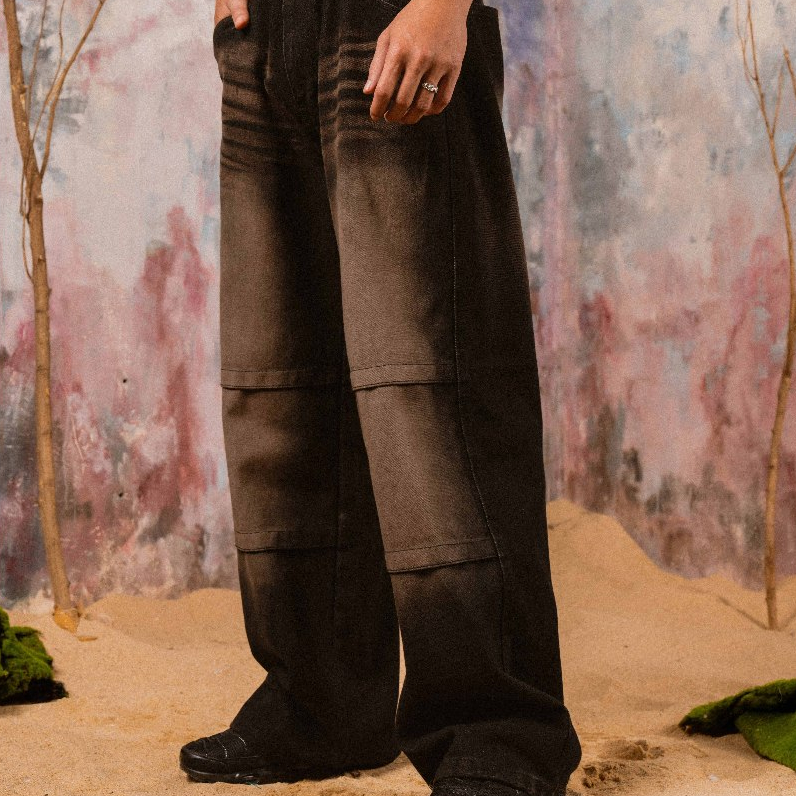 Pluviophile - Celana Baggy Jeans Wide Leg Biothink Retro Strip