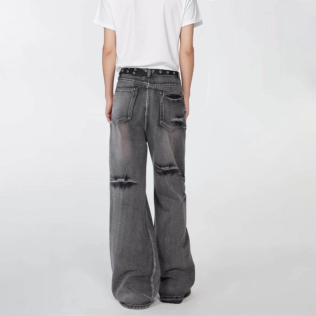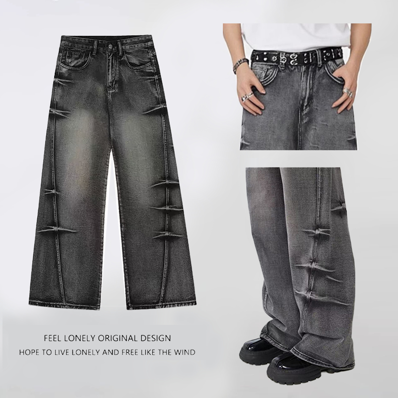 Baggy Pants Celana Retro Jeans Pria Distro Terbaru Celana Casual Korean Style Pria Straight Jeans Grey Denim