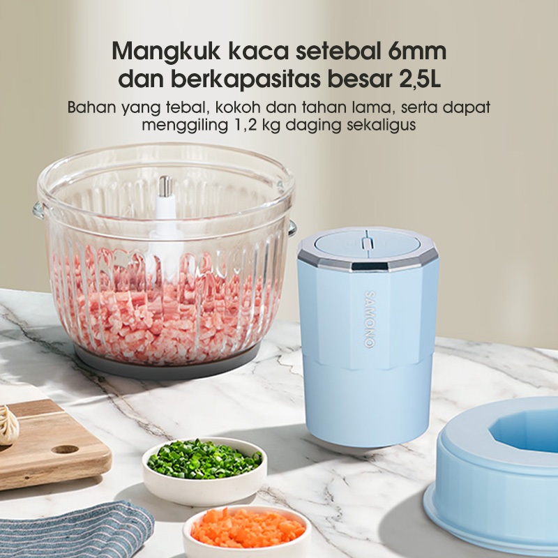 SAMONO Food Chopper Multifungsi Food Processor 2.5 Liter Daya Kuat Penggiling Daging Penghalus Makanan Garansi 1 Tahun SW-CG350 - Light Blue