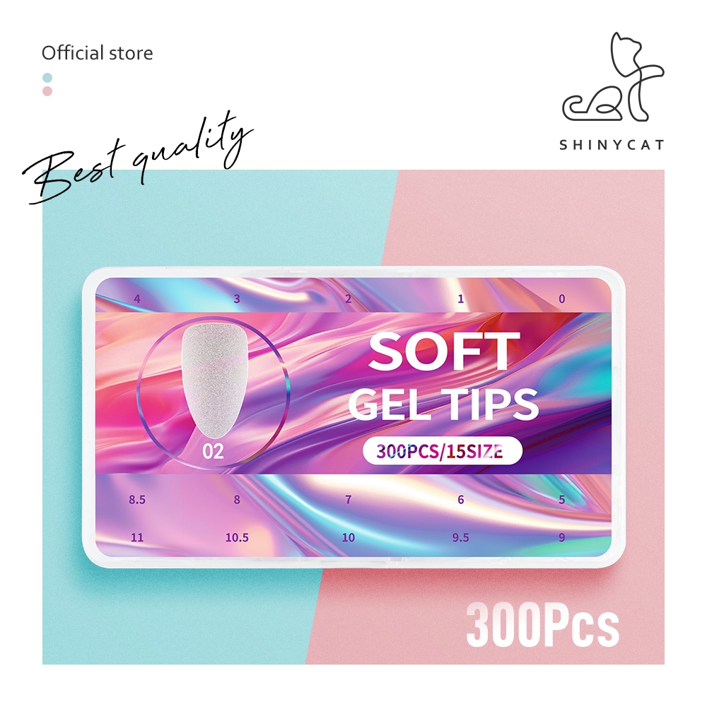 Shinycat 300Pcs soft gel tips Seni Kuku Karya Buram Full Buff Nail Sangat Tipis Dan Mulus Tetes Air Almond Artificial Na