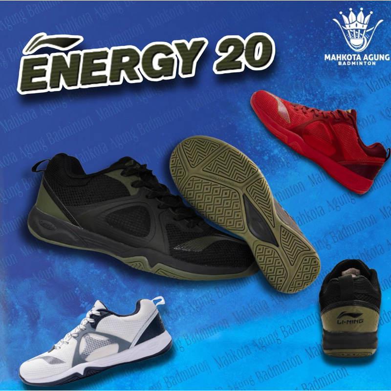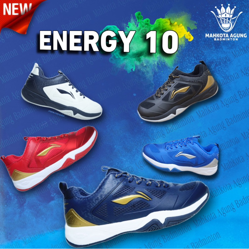 Sepatu Badminton Lining Energy 20 Dan 10 Original New Terbaru Nyaman Bagus Warna Putih Hitam Biru