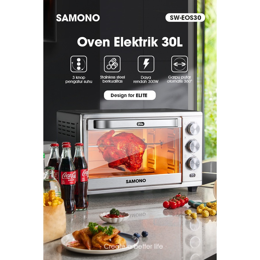 SAMONO Oven Listrik Low Watt 30 Liter Stainless Silver Pemanggang Serbaguna SW-EOS30