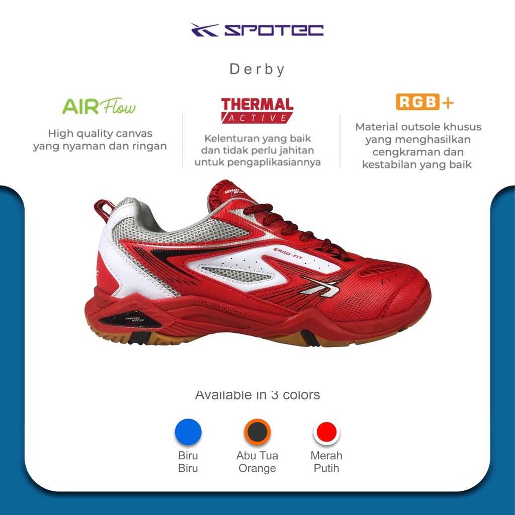 Spotec Sepatu Badminton Artikel Derby-Merah/Putih
