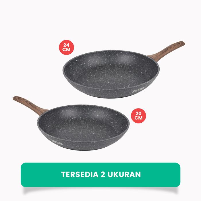 Teflon Penggorengan Lapisan Granit Anti Lengket Gagang Kayu 20-24cm Kitchenware - Frypan Cookware 20cm