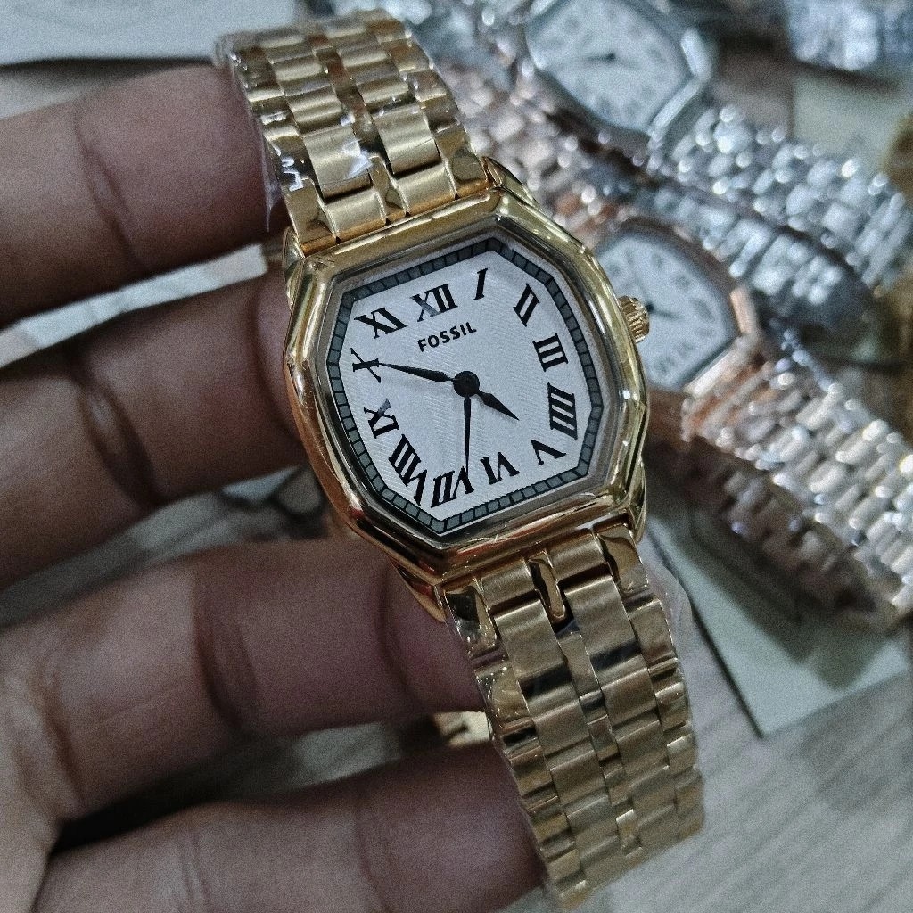 JAM TANGAN WANITA FOSSIL ES5361 / ES 5361 GOLD DIAL WHITE STAINLESS STEEL FREE ONGKIR - FREE BOX