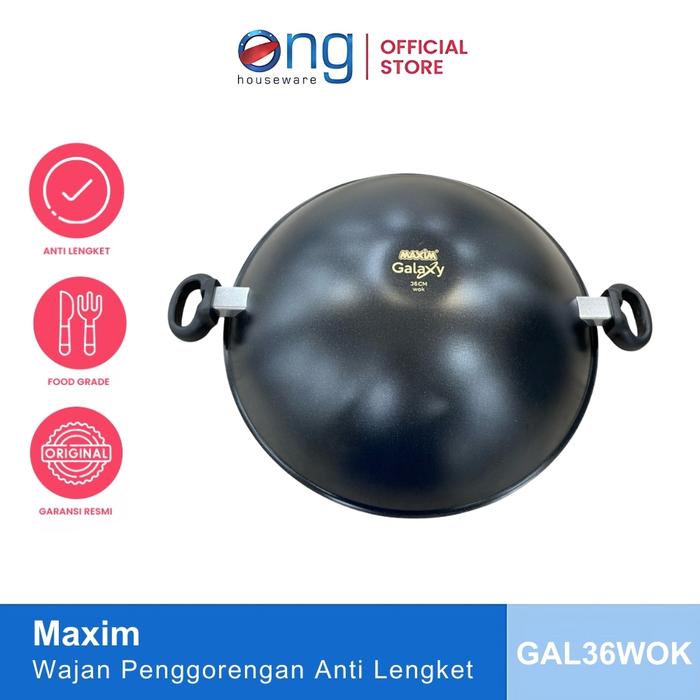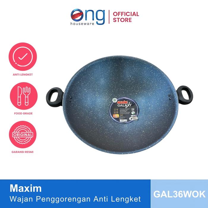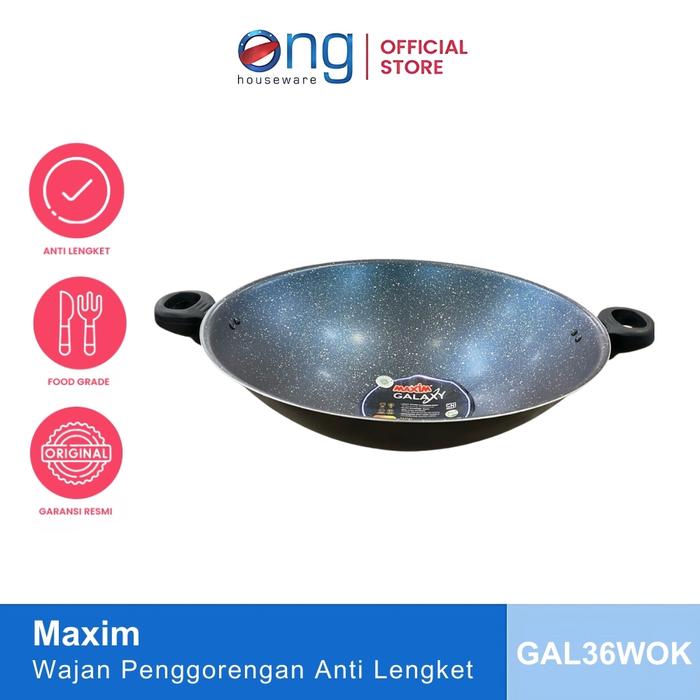 Ong Houseware - Wajan Teflon Penggorengan Anti Lengket Non Stick 30cm 36cm Maxim Galaxy GAL30WOK - GAL36WOK 36CM