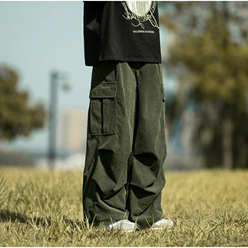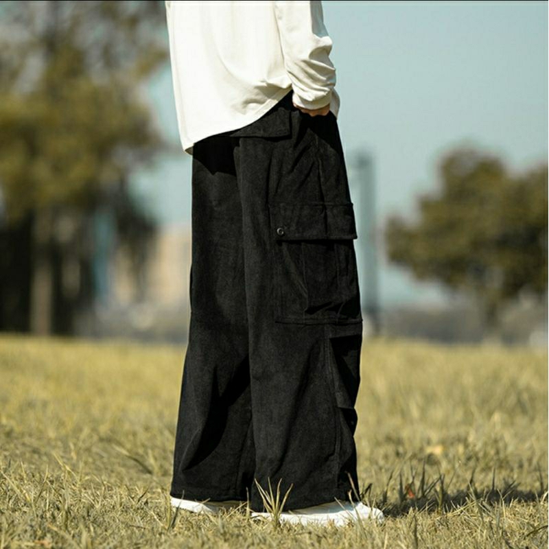 Celana Cargo Corduroy Hitam Hits Kekinian Pria Original Baggy Loose Pant Gombrang Kualitas Premium