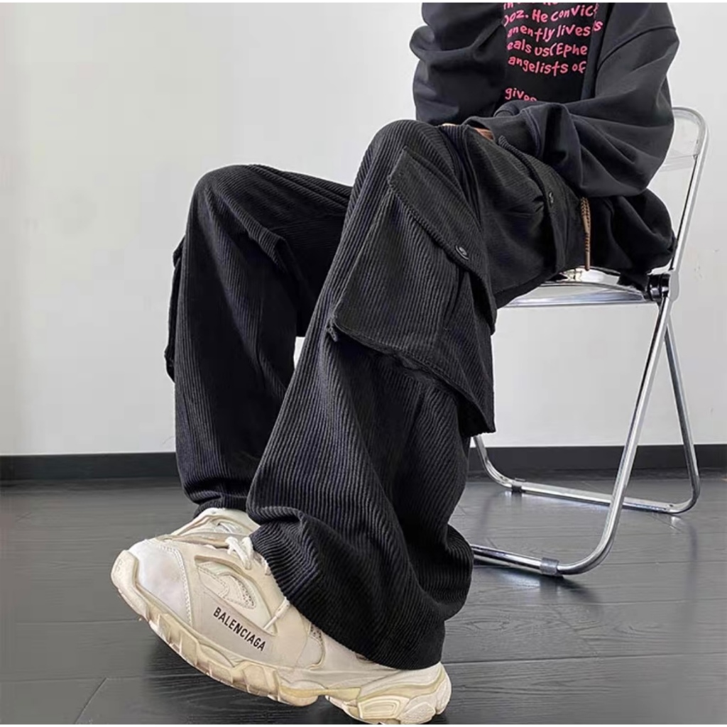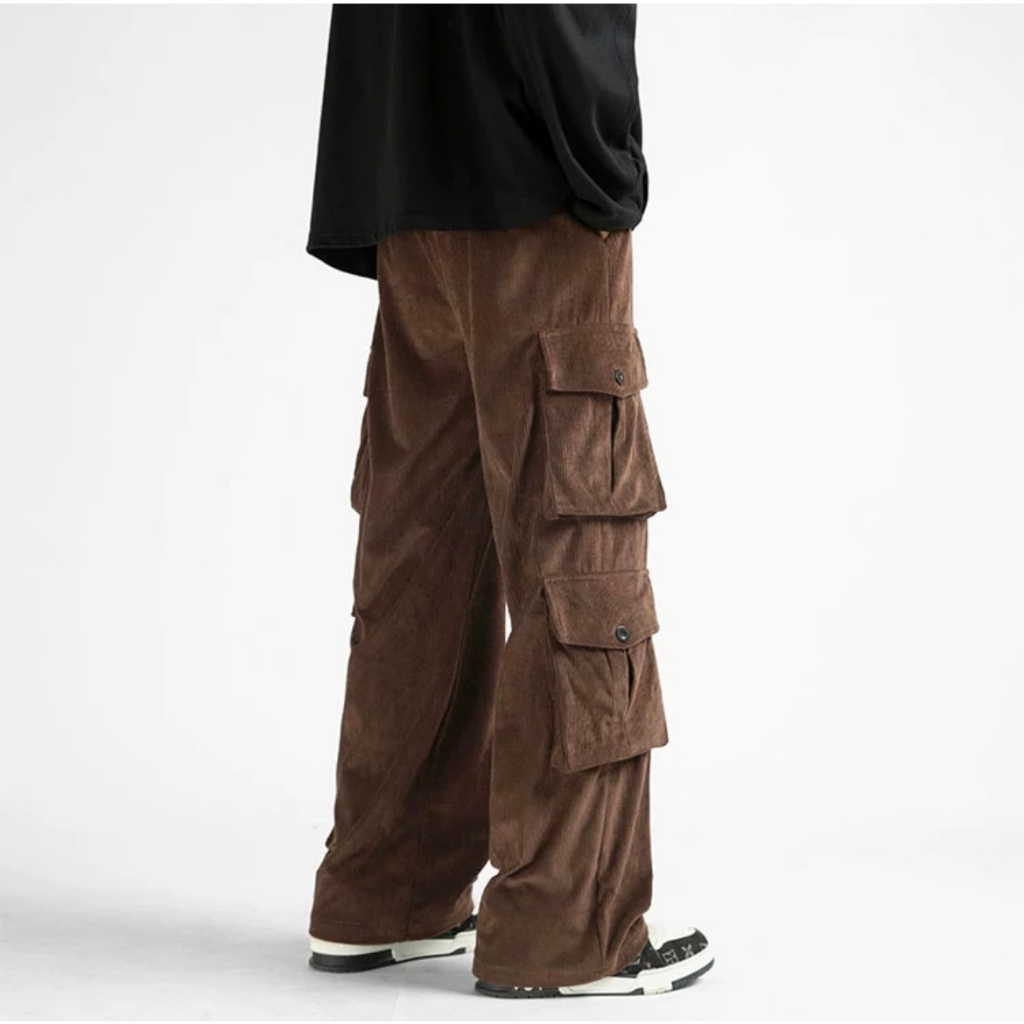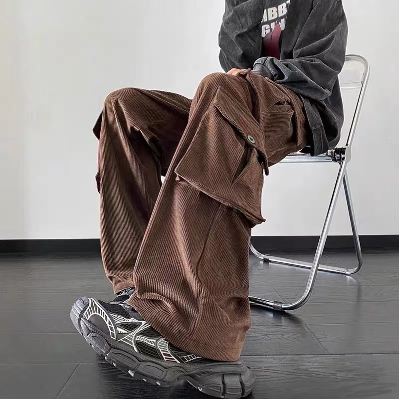 celana cargo panjang pria celana outdoor pria retro baggy celana kargo corduroy longgar casual big size kulot America street wide leg pants
