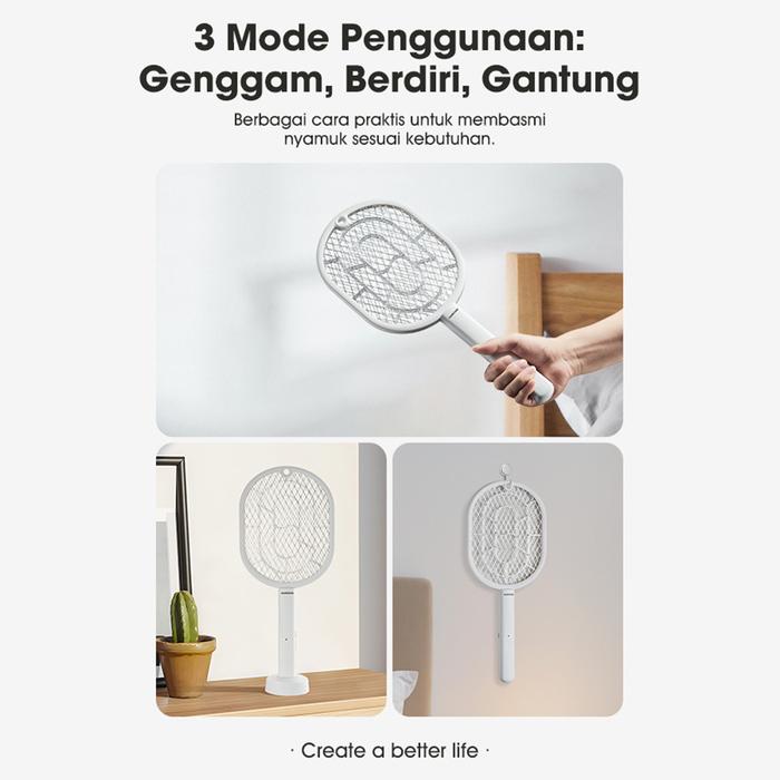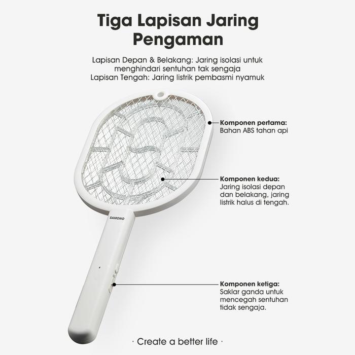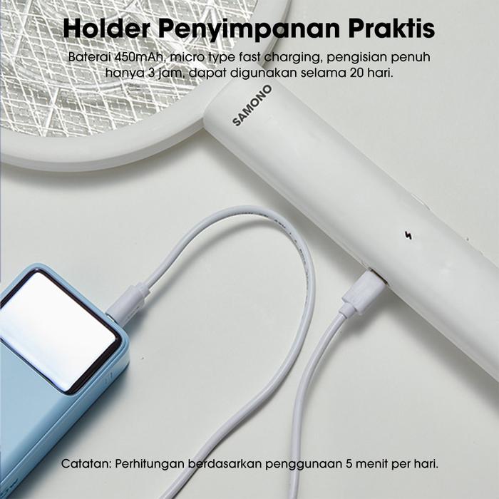 Samono Raket Nyamuk Elektrik Uv 3500V Bisa Berdiri, Gantung & Genggam [Sw-Ms40] Putih - Sw-Ms40