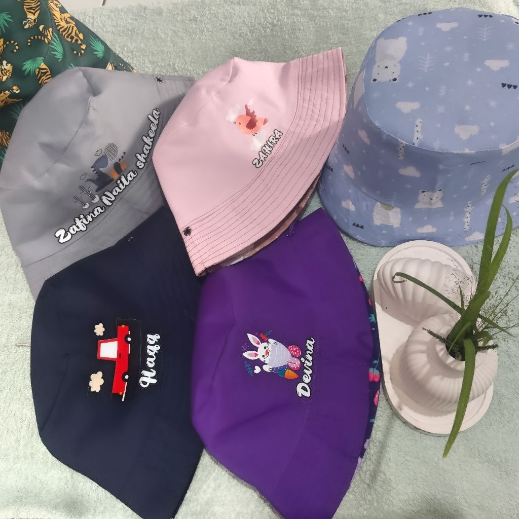(BISA CUSTOM NAMA) BUCKET HAT BOY & GIRLS /TOPI ANAK BOLAK BALIK 2 IN 1 DETAIL CEK DESKRIPSI