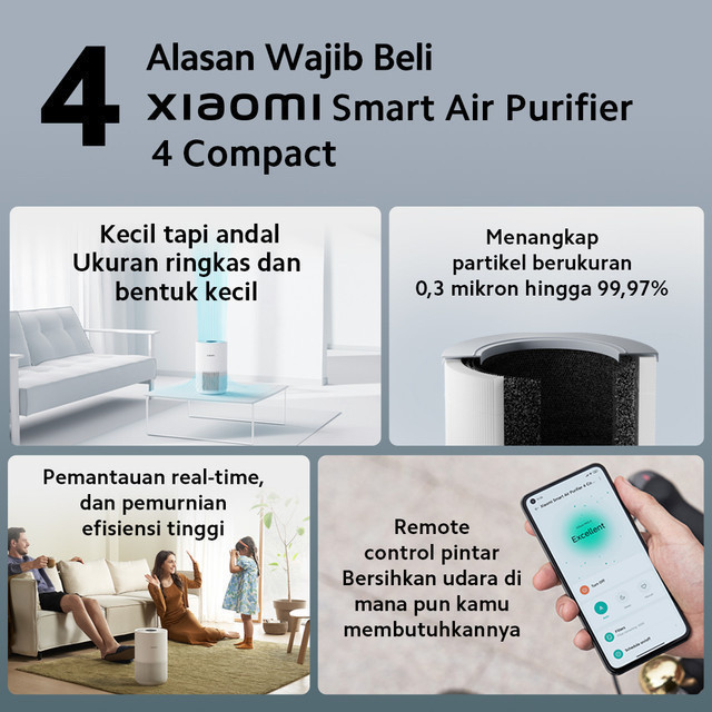 Xiaomi Smart Air Purifier 4 Compact | Menghilangkan Alergen | Filter 3-in-1 | Konsumsi energi rendah | Penjernih udara