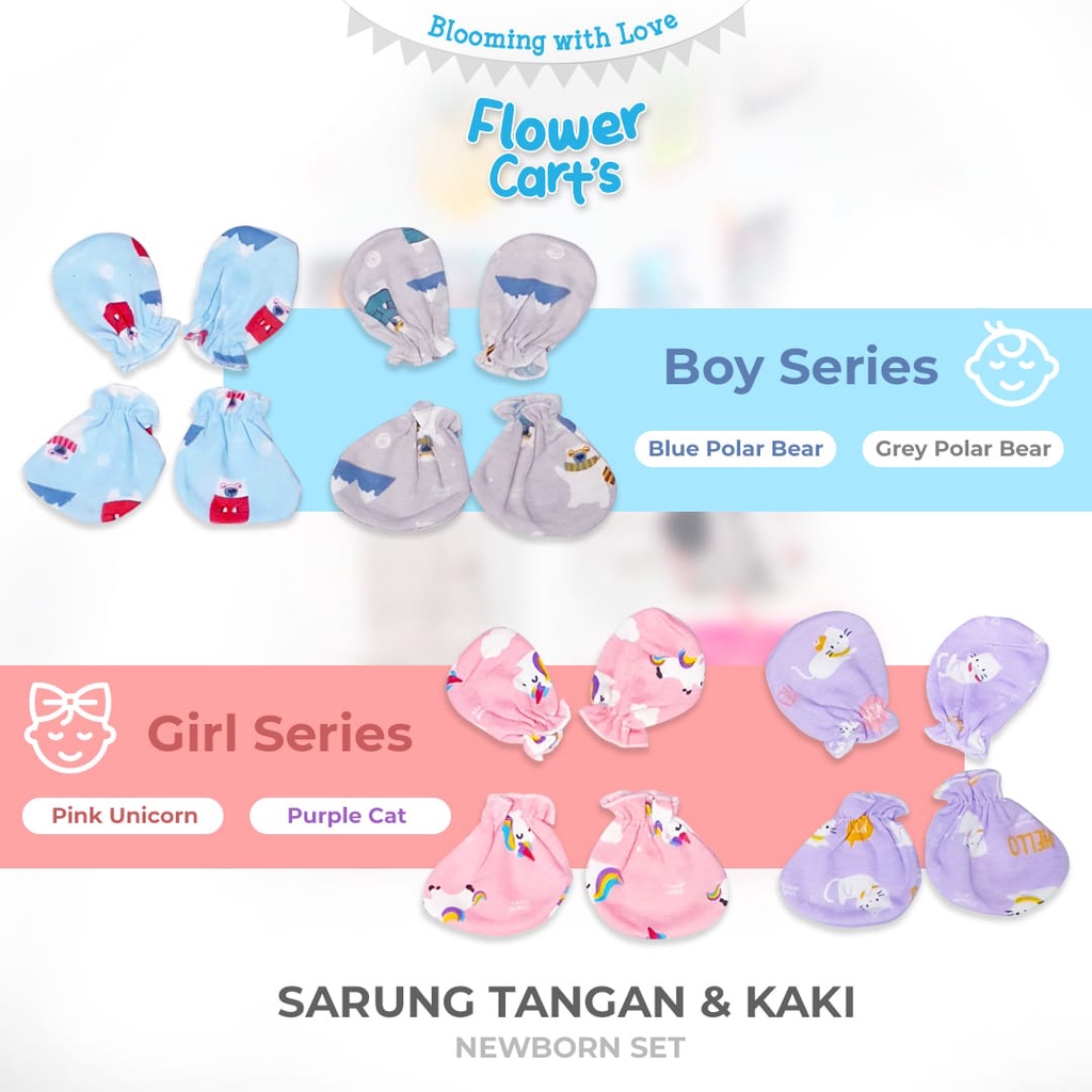 1SET SARUNG TANGAN KAKI BAYI POLOS / MOTIF FLOWER NEW BORN