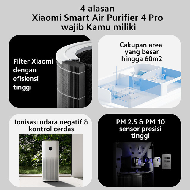 Xiaomi Smart Air Purifier 4 Pro | Layar OLED | 3-in-1 | Filter Kontrol Cerdas Menghilangkan Bau | Penjernih udara Stor