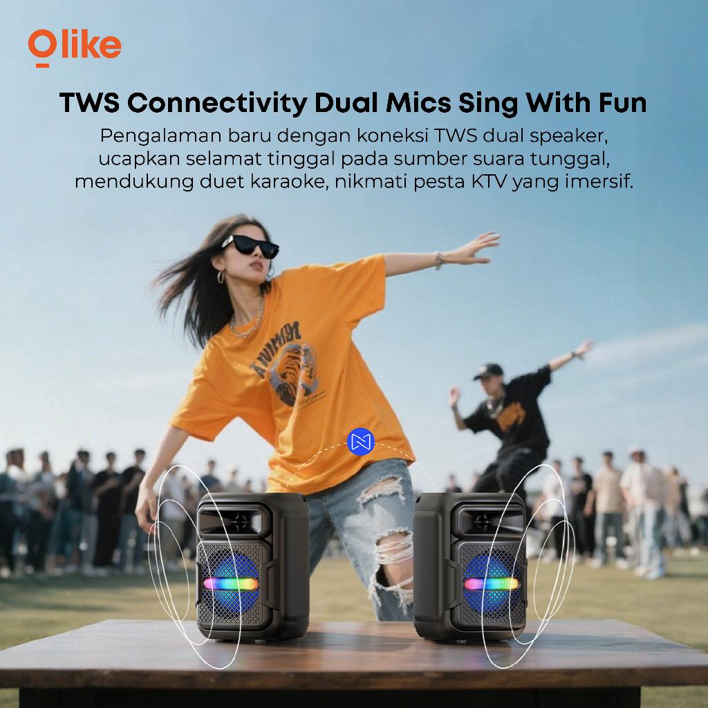 Olike Speaker Bluetooth KM12 10W Bass Stereo 5 Jam Playing Time + TWS RGB Karaoke Mic AUX TF USB