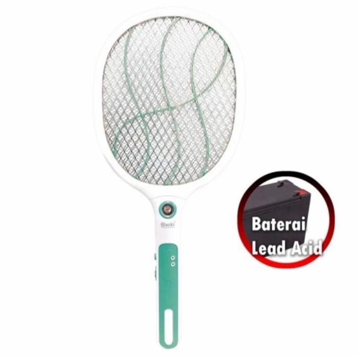 Aoki Raket Nyamuk Charge Lithium Battery Ak-883 New - Hijau Muda
