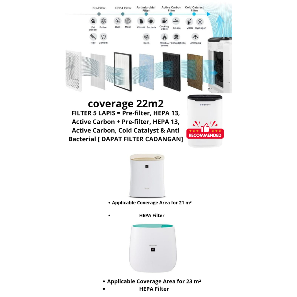 SHARP air purifier FP-J30Y-B/P/A coverage 23M2