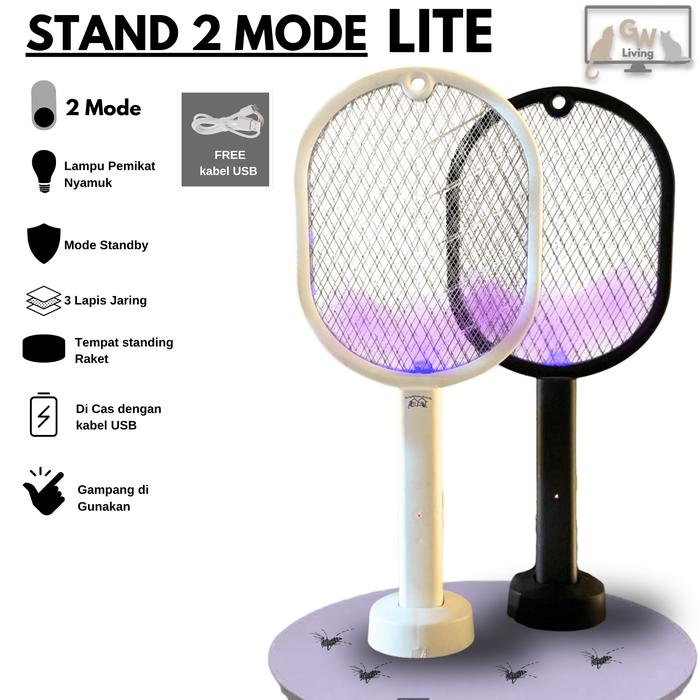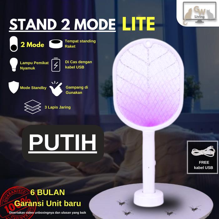 Raket Nyamuk 2 Mode 2In1 Usb Lampu Uv Setrum Kencang Garansi 6 Bulan Free Kabel Usb Hitam Putih - Perangkap Nyamuk