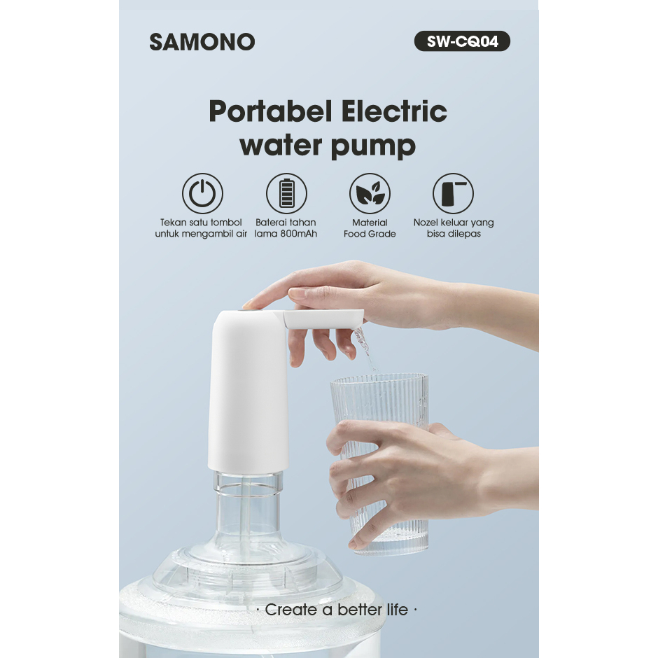 SAMONO Pompa galon elektrik Pompa Galon Air Elektrik Dispenser USB Rechargeable Water Pump atau Gallon Pump Touch Screen Food Grade SW-CQ04 FREE Kabel Micro USB
