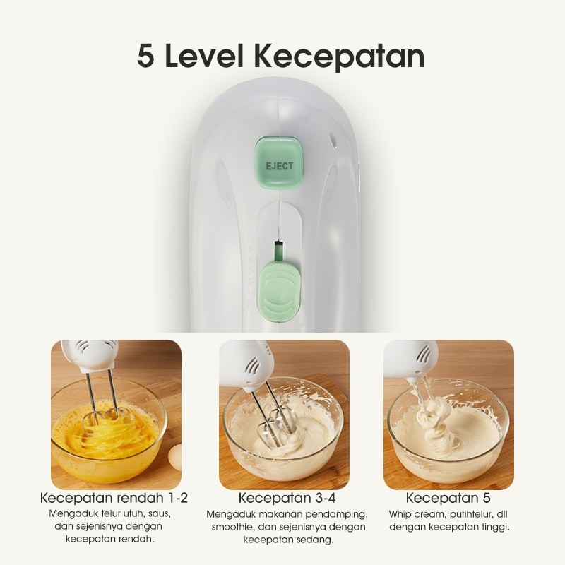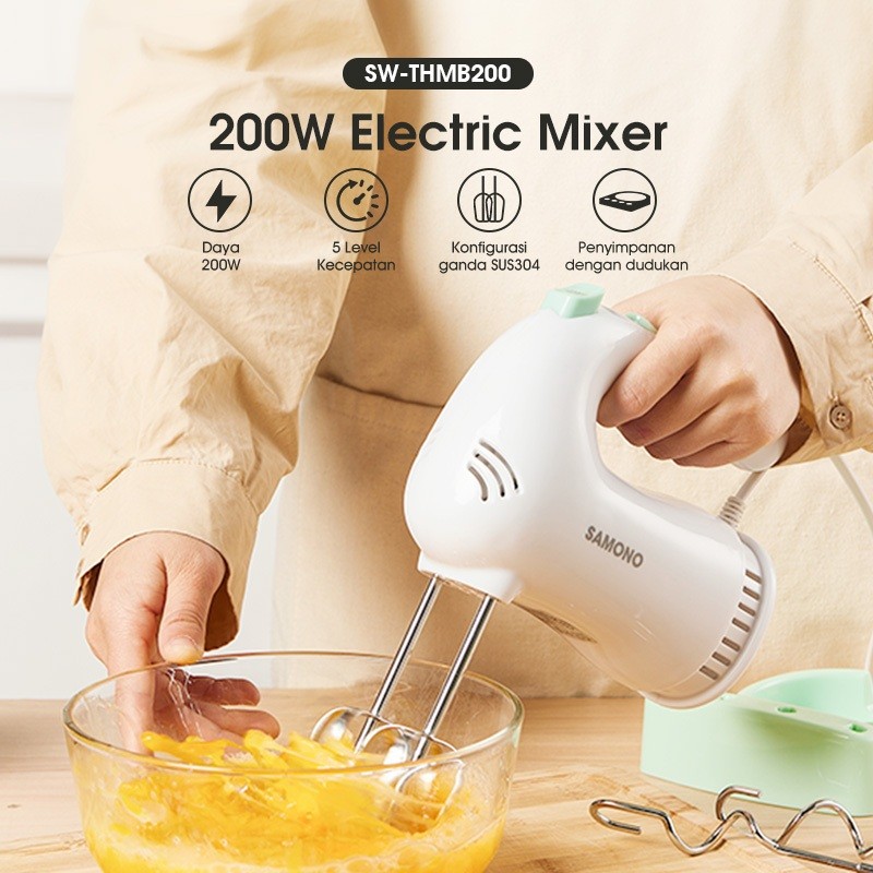 SAMONO Hand Mixer Hemat Daya 200 Watt Dengan Dudukan Penyimpanan 5 Level Kecepatan SW-THMB200 Garansi 1 Tahun