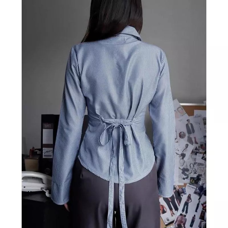 JULIA T0P Stripe Shirt Kemeja Fita Body Wanita Korean Style Office Shirt