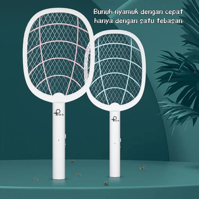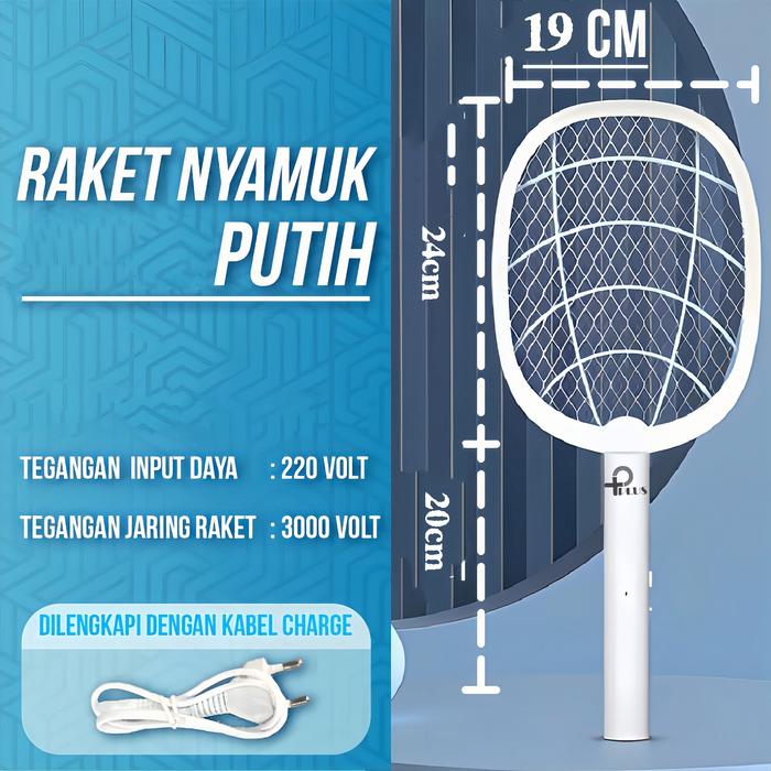 Raket Elektrik Raket Pembasmi Nyamuk Setrum Kencang Rechargeable Raket Nyamuk - Raket Nyamuk Putih