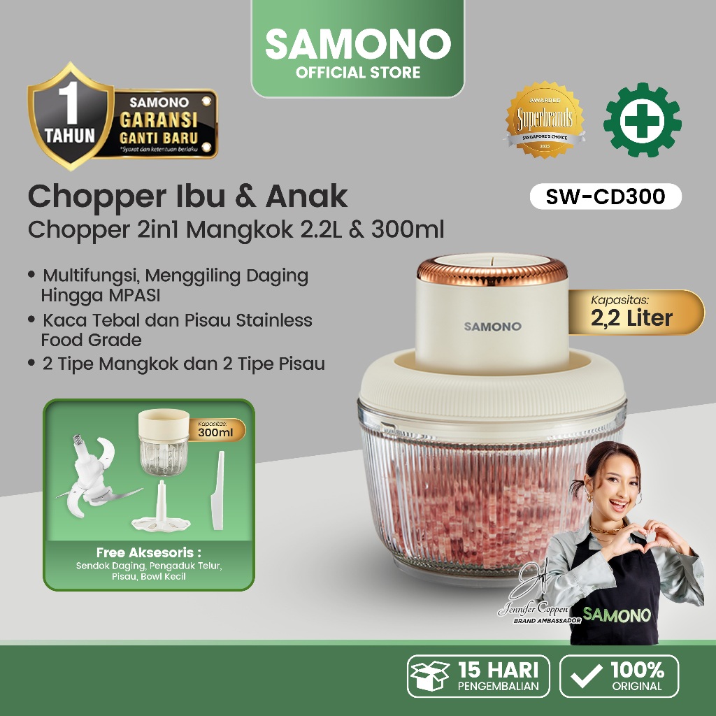 SAMONO Chopper 2in1 Ibu & Anak 2.2L dan 300ml Multifungsi chopper samono coper daging dan bumbu coper bumbu serbaguna samono official store coper blender serbaguna multifungsi SW-CD300