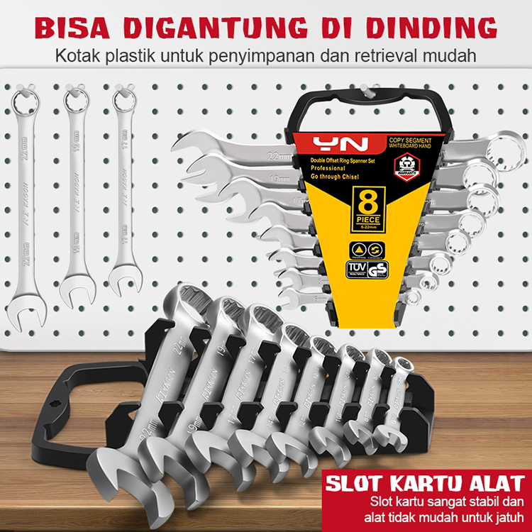Kunci Ring Pas Set 8pcs Lengkap Kunci Pas Ring Set Kunci Kombinasi Spanner Wrench 6-22MM