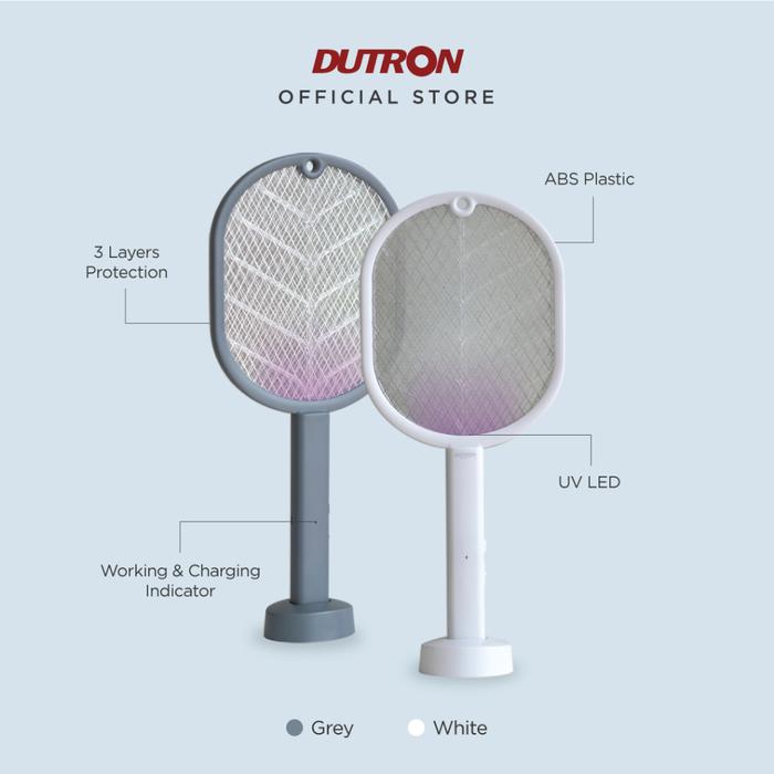 Dutron Mosistrike Raket Nyamuk Listrik Uv Rechargeable Grey White Elektrik Cas Tahan Lama - White