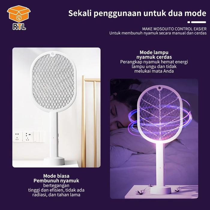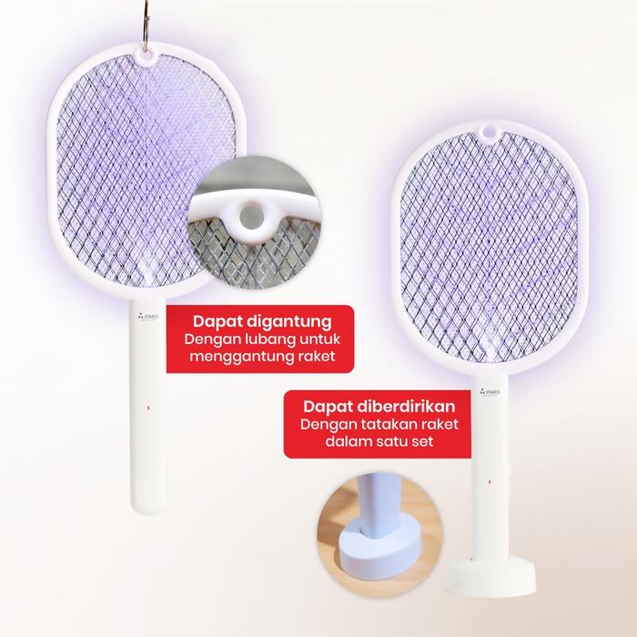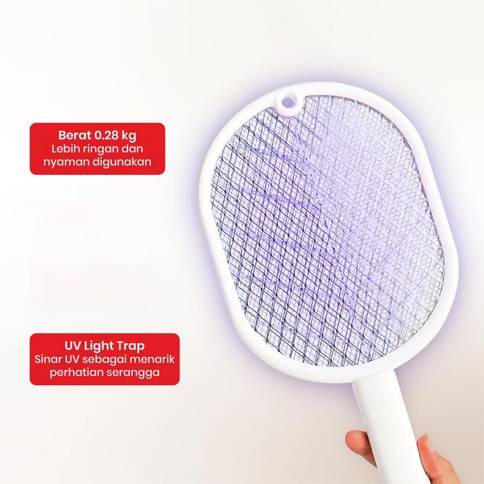 Raket Nyamuk Elektrik Cas Ori Tahan Lama Murah Awet Charger Usb 2 In1 Raket Nyamuk Standing - Putih