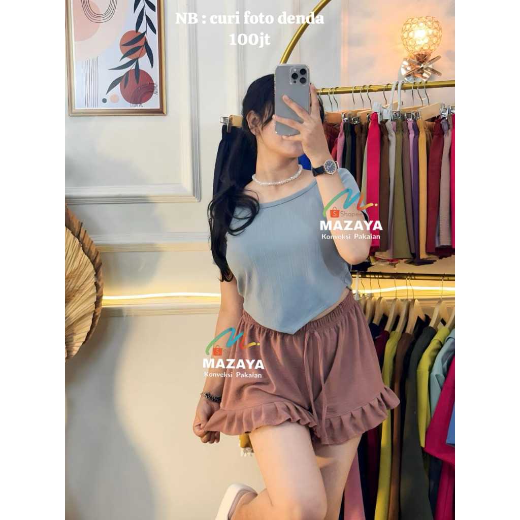 pants Ruffle Celana Pendek Wanita Crinkle Elastis