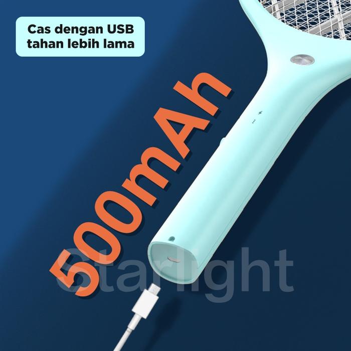 Starlight Raket Nyamuk Charger Listrik Raket Nyamuk Sinar Uv Killer Led Light Rechargeable Pembunuh Elektrik Multifungsi