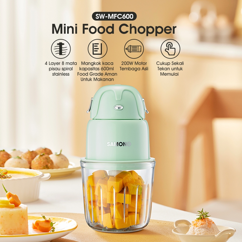 SAMONO Chopper Daging Dan Bumbu 600ml MPASI Food Grade MFC600 with 1 Year Warranty