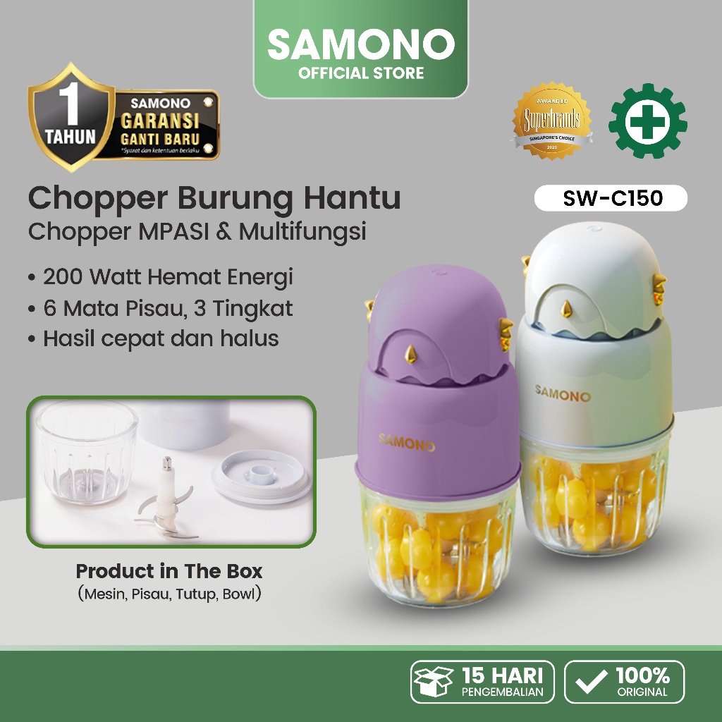 SAMONO Food Chopper MPASI 150Watt Mini Chopper Multifungsi 300ML Portable Stainless Steel Anti Karat SW-C150