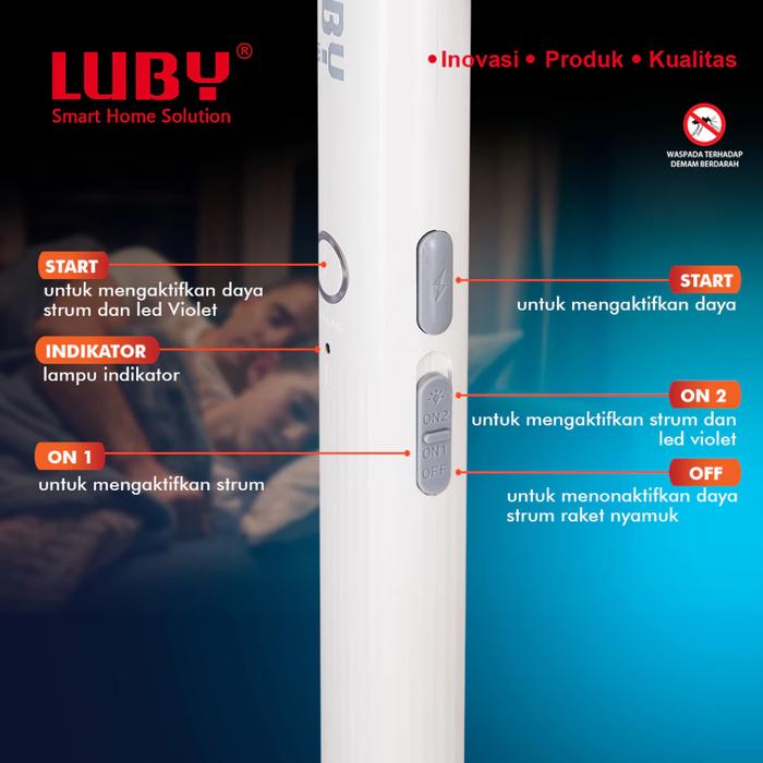 Raket Nyamuk Luby Model Terkini Dengan Led Violet Dan Baterai Cas Kapasitas 1500Mah