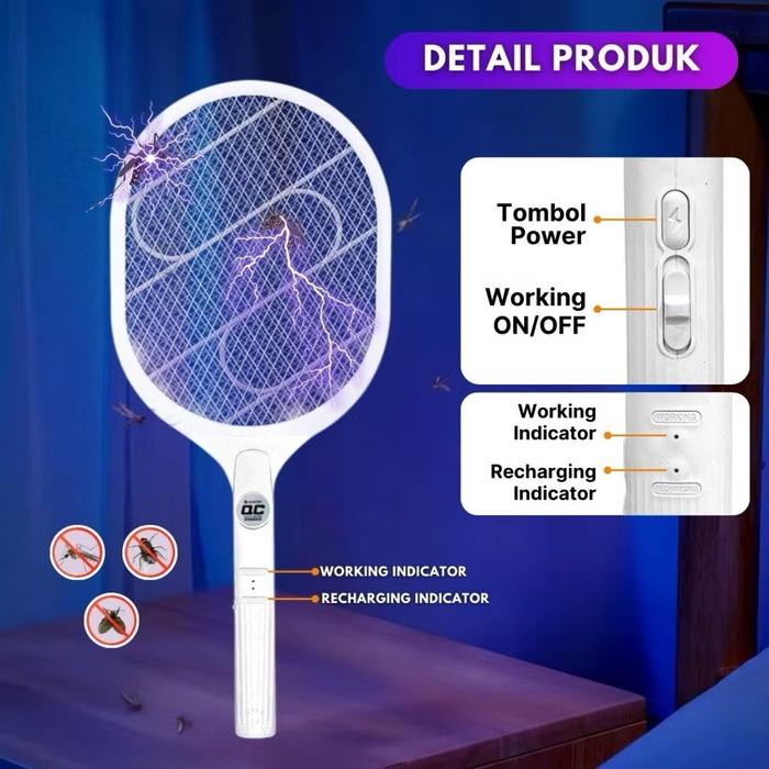 Raket Nyamuk Listrik 2 In 1 Multifungsi 500Mah Tahan 3 Hari Pengisian Ulang Aman Untuk Penggunaan Rumah Mosquito Killer