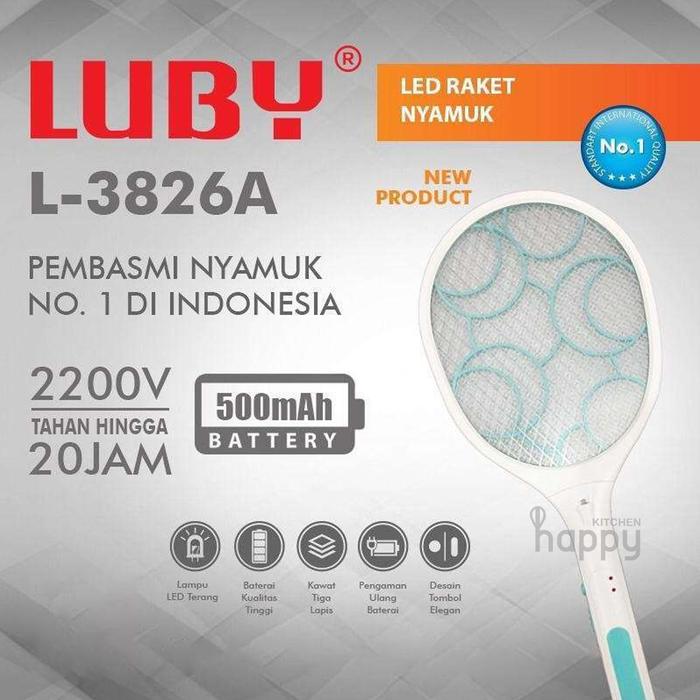 Raket Nyamuk Luby 3826A 3881 3882 3883 3873 3865 Raket Nyamuk Cas Rechargeable + Senter - L 3826