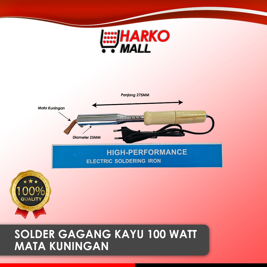 Solder Alat Patri Listrik Gagang Kayu Bengkok Mata Solder Kuningan 100 Watt