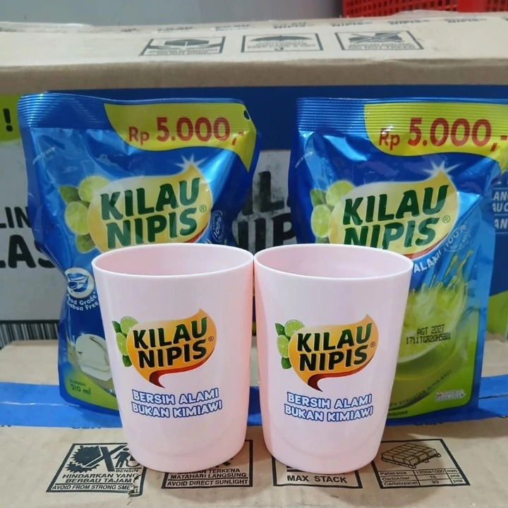 PAKET 5 PCS Kilau Nipis Sabun Cuci Piring Jeruk Nipis 210ml GRATIS GELAS 5PCS