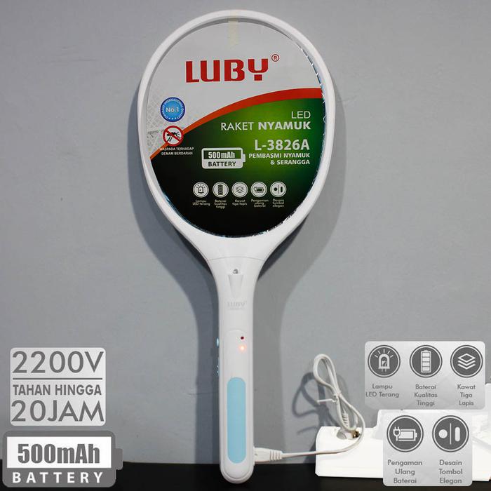 Raket Nyamuk Luby 3826A / 3825A Rechargeble Tahan 20 Jam + Lampu Led / Perangkap Nyamuk Elektrik Random - Raket Nyamuk 3