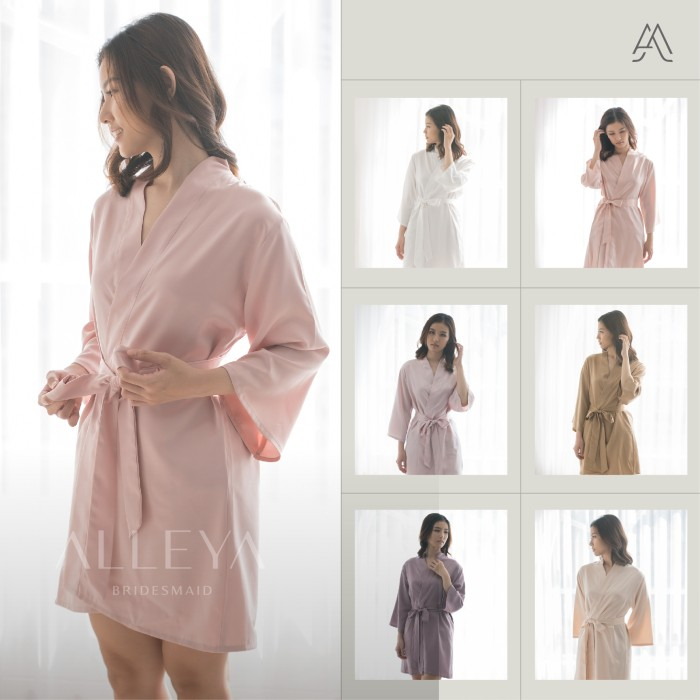 Mini Basic Robe | Kimono Satin - FREE BORDIR | Kimono Bride - Bridesmaid | Baju Tidur Wanita | Kimono Satin | Bride Robe