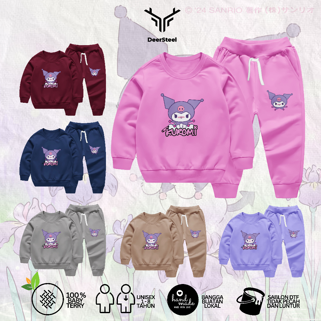 DeerSteel Setelan Joger Anak Viral Motif Kuromi Usia 1 - 6 tahun babyterry soft