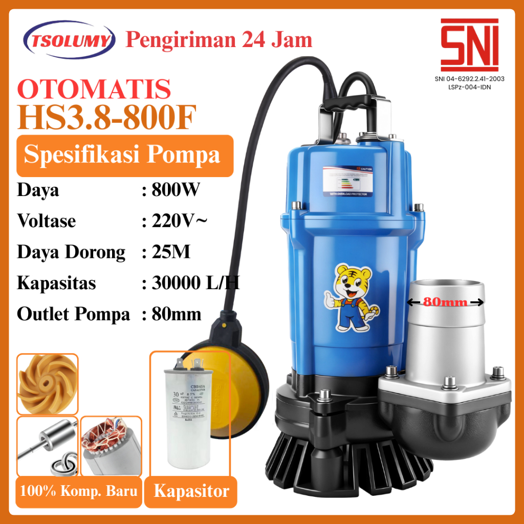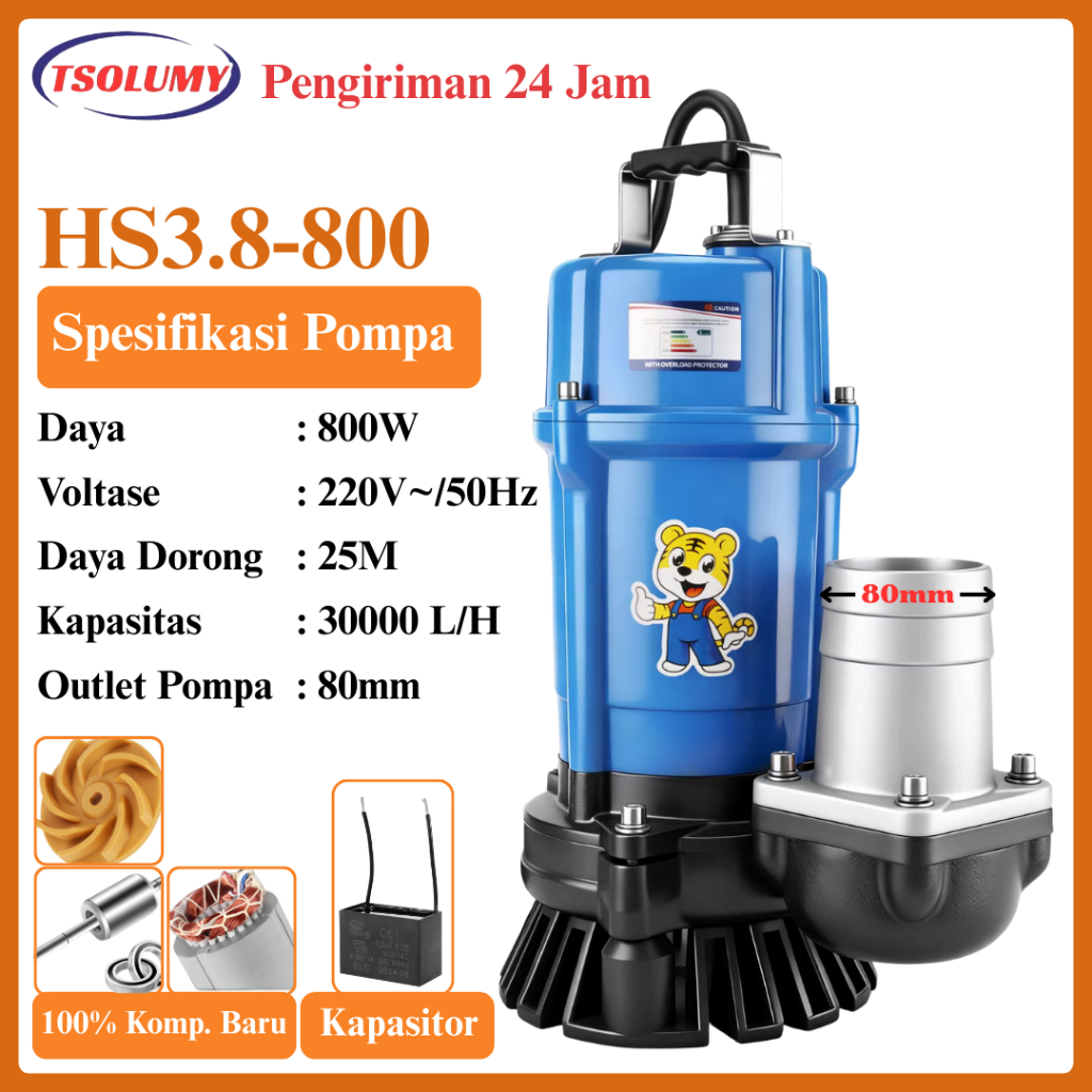 Tsolumy Pompa Celup Air Kotor .2.4.500 & .3.8.800 Pompa Pompa Banjir Pompa Limbah