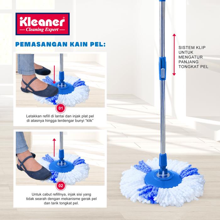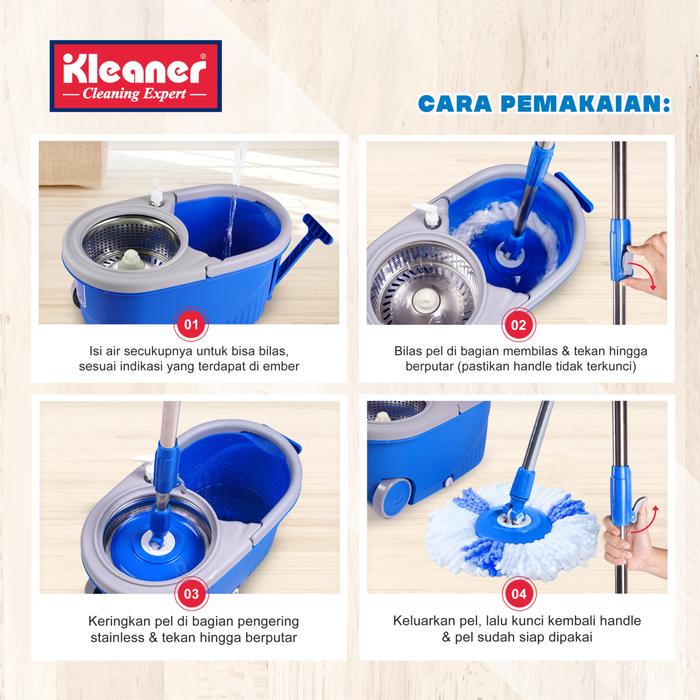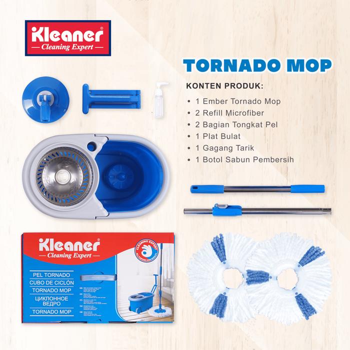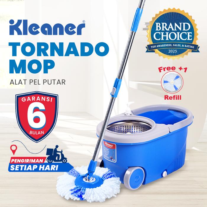 Kleaner Alat Pel Tornado Mop 1 Set Pel Putar Spin Mop Pembersih Lantai Dengan Ember Free 1 Refill - Biru