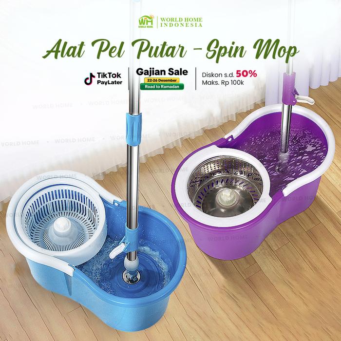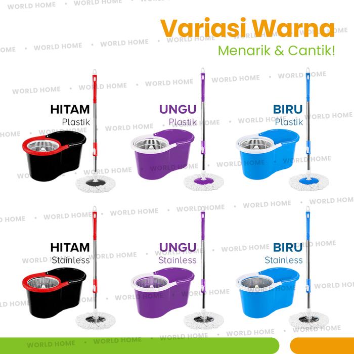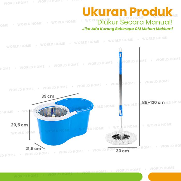 Worldhome - Alat Pel Lantai Ultra Pel Putar Pel Mop Tanpa Peras Tangan Kain Pel Lembut Ember Plastik [12] - Biru - Plast
