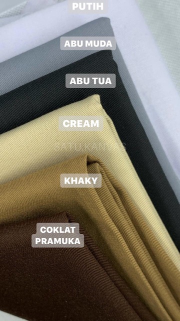 Cream, Khaky, Hitam, Navy, Army, Abu tua, Dharma wanita, Biru turquise, Terracota, Merah